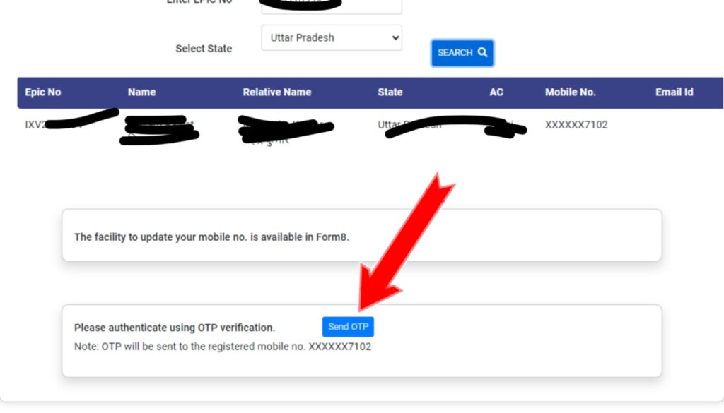 - जैसे ही आप सर्च पर क्लिक करेंगे। वैसे ही अगली जो स्क्रीन है वो आपके डेटा को दिखाते हुए खुल जायेगी। वहां पर आपका नाम, पिता का नाम और वोटर आईडी नम्बर सब कुछ देखने को मिल जायेगा। अब आपको सबसे नीचे का आप्सन देखने का मिल जायेगा वहा पर आप क्लिक करेंगे।