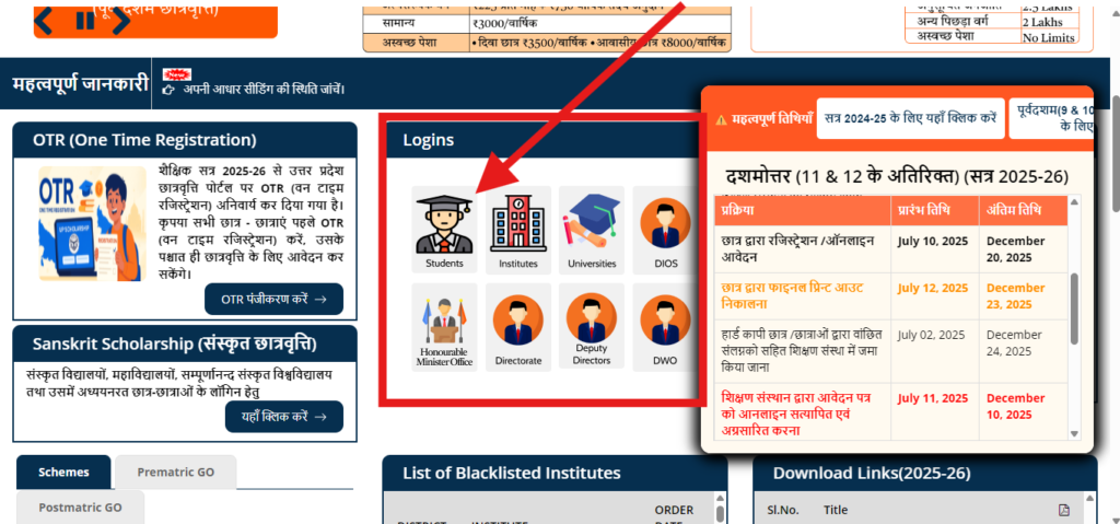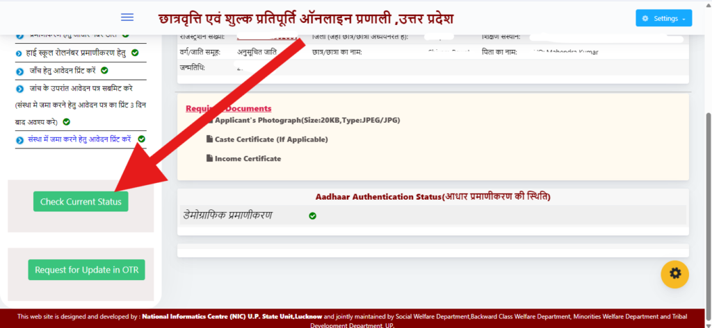 UP Scholarship 2025-26 का स्टेटस कैसे चेक करें। (How to check UP Scholarship 2025-26 status)