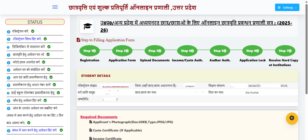 UP Scholarship 2025-26 का स्टेटस देखने के लिये आवश्यक जानकारी