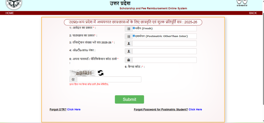 1. UP Scholarship 2025-26 का रजिस्ट्रेशन नम्बर
